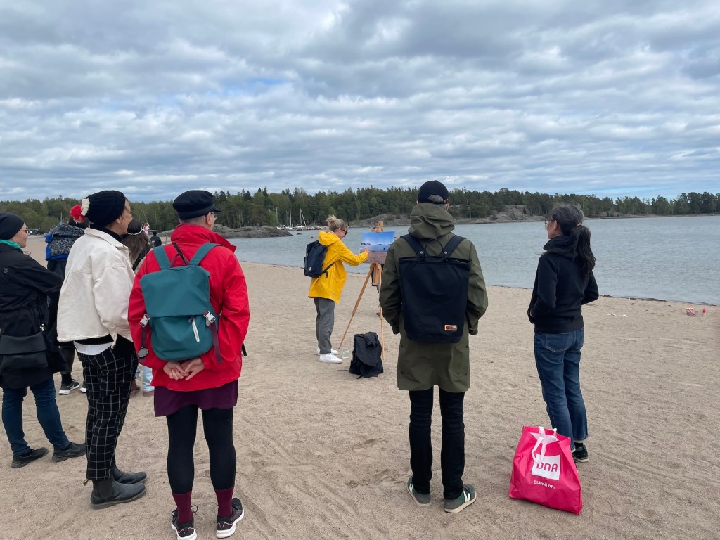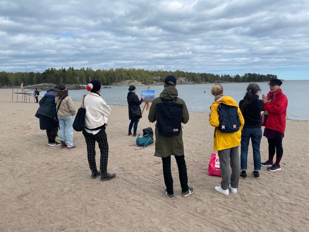 The City is a thin line / Kaupunki on veteen piirretty viiva is a 2-day art + research event with nine works/gestures by Helsinki sea shore and a symposium in Vuosaari. During the event the artists, their works and the symposium guests were invited to share their works, ideas and sensations of how the city outlines are by nature always porous and negotiated, moving and wavy – be they geographical, conceptual, mental or imagined. The participants are also invited to discuss how the art works might shine in relation to norms, neighbourhoods, and dreaming.