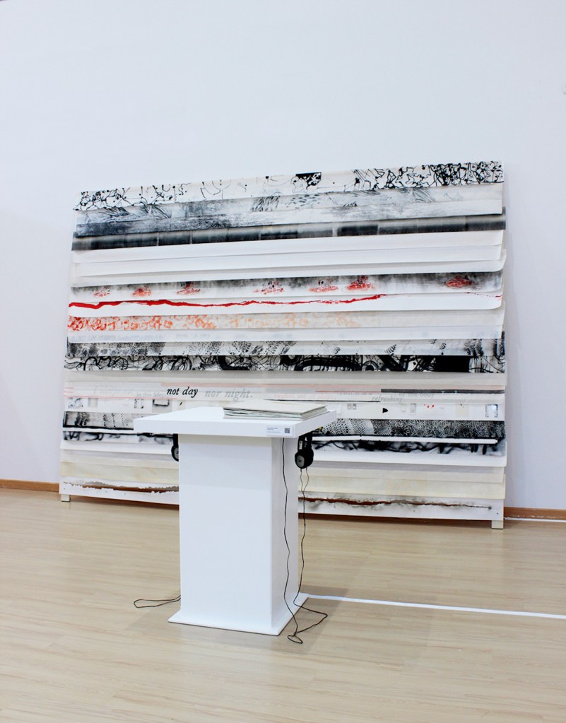See more: IMPACT 10. Encuentro. Santander, ES. International Printmaking Conference 1 – 9.09. 2018., collective installation and art book: Devotions Upon Emergent Occasions – John Donne. Biblioteca Central de Cantabria. https://www.impact10.es/exhibitions/