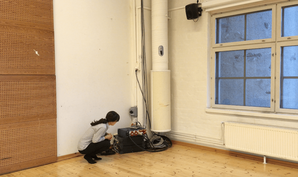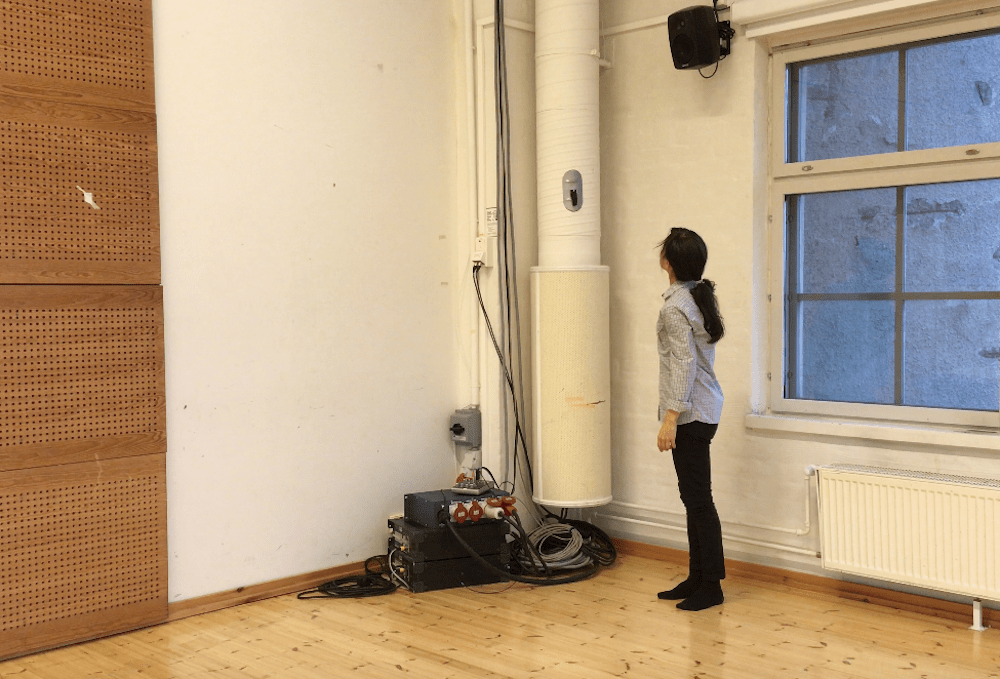 An unusual use of audio technology based on looking at loudspeakers, listening to amplifiers and sniffing cables. Theater Academy training studio 2020 Helsinki.