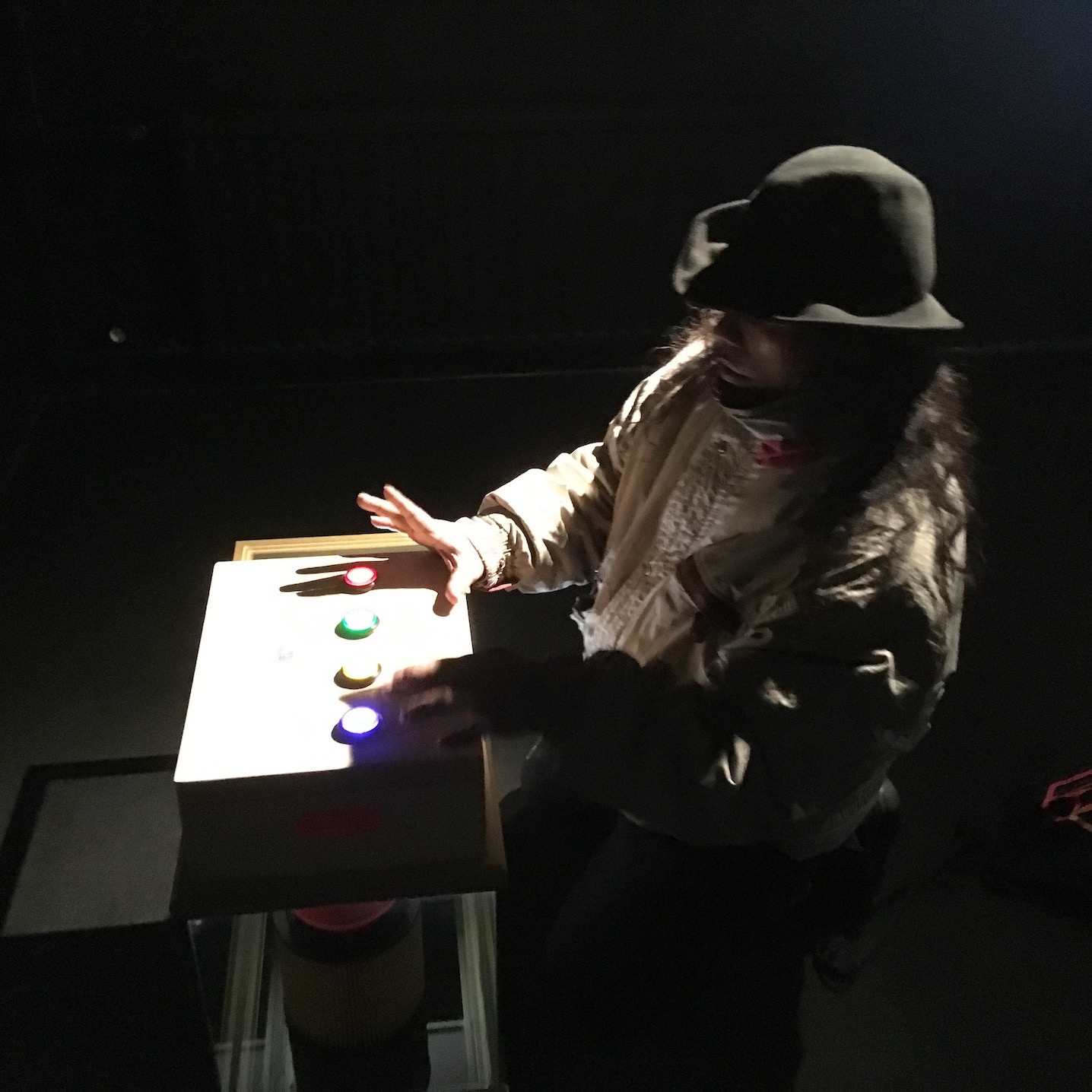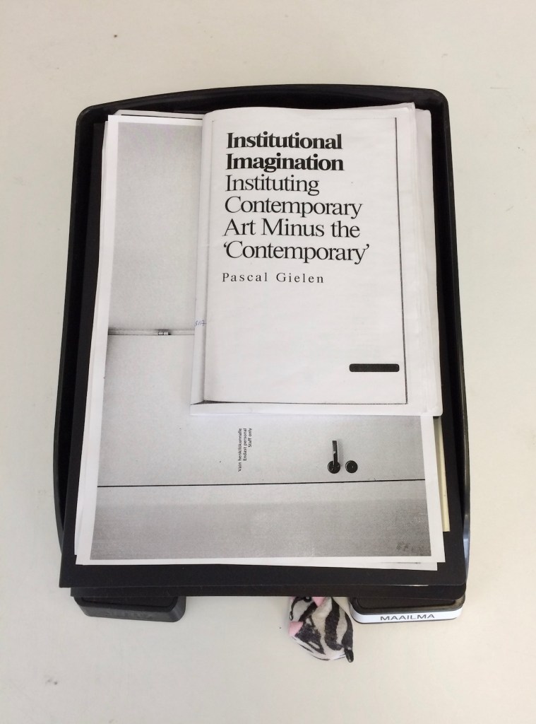 The work has been on display in January 2019 at Galleria Rajatila as part of an interactive work called Identieettipaja (Identity workshop). The sculpture makes it possible to experience the challenge of generating an air stream. The sewer pipe is clogged with a tennis sock so that the air flow from pumping stops. The pursuit may change to frustration, but frustration can at best increase the tolerance of imperfection, which is rarely too much.