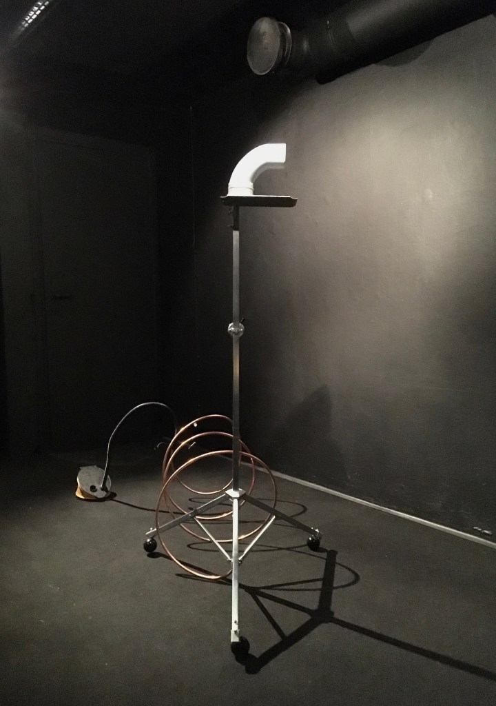 The Frustration Expression is an interactive sculpture whose function (inactivity) is based on the sound generated by pumping air and the movement that pushes the air stream through the copper tube through a standing pedestal and its hollow shaft into the drain pipe.